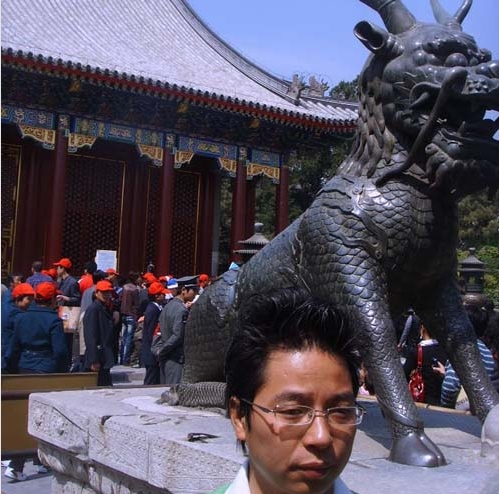 Die chinesischen Touristenführer tragen kleine Megaphone, die meist mit einem headset kombiniert sind